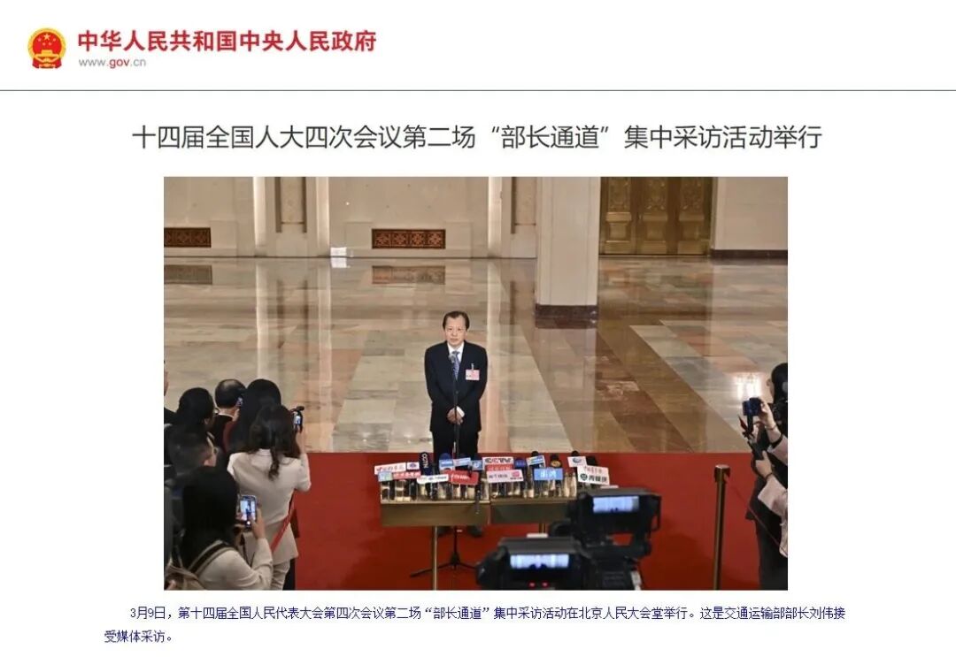 3月9日,十四届全国人大四次会议第二场“部长通道”集中采访活动在人民大会堂举行。交通运输部部长刘伟接受媒体采访。