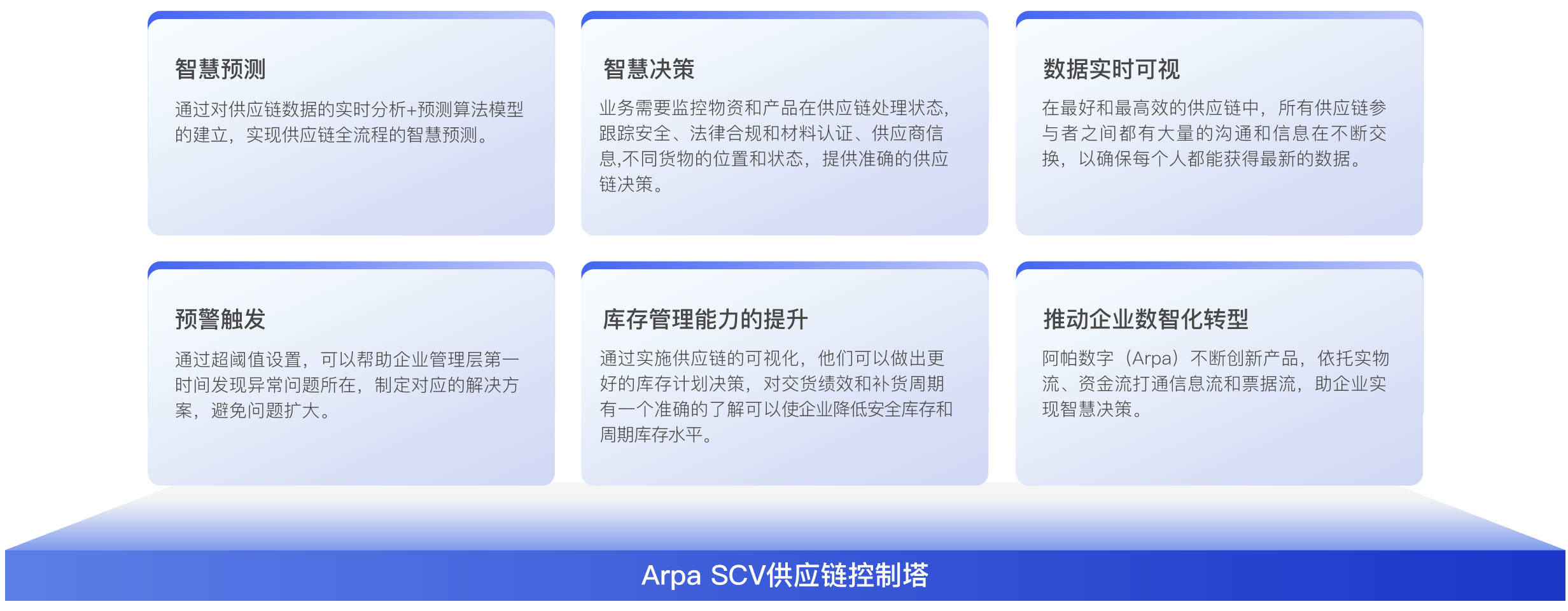 Arpa SCV供应链控制塔,是利用信息技术,采集、传递、存储、分析、处理供应链中的订单、物流以及库存等整体供应链相关指标信息,并将分析结果可视化展示给决策者,并根据相关配置给出采购、生产和运输各个节点补料建议和调度建议,最终实现在对的时间和空间,把准确的商品交付给需要它的客户。