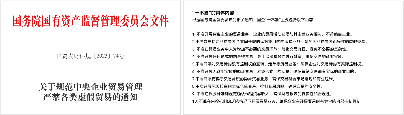 根据国务院国资委贸易"十不准"的相关要求,各省市国资委针对省属市属国资平台类公司也做出了相关规定。各省市国有企业贸易类业务面临被停止的风险,平台公司一旦贸易类业务停止或不计入营收都会给平台公司融资带来巨大风险。