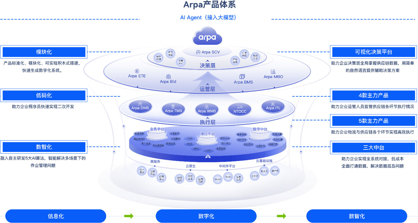 阿帕数字(Arpa)帮助平台公司搭建物流贸易一体化数字平台(物贸一体平台)把贸易和物流融为一体,把融资性贸易通过数字化手段做实做真,实现贸易流、信息流、实物流、票据流、四流合一。 Arpa物贸一体平台整合线上物流资源,储贸运协同服务。平台拥有司机端APP、集采中心、公铁联运、公水联运等多联运平台;港口服务中心、智慧物流园区、物贸一体大数据中心等功能模块,阿帕 数字(Arpa)打通公铁海全量数据,目前已服务近万家企业客户,拥有丰富的物流资源,给甲方客户提供从咨询规划、平台建设、运营辅助的全流程服务,帮助国有平台公司实现合规经营,实现物贸 一体。